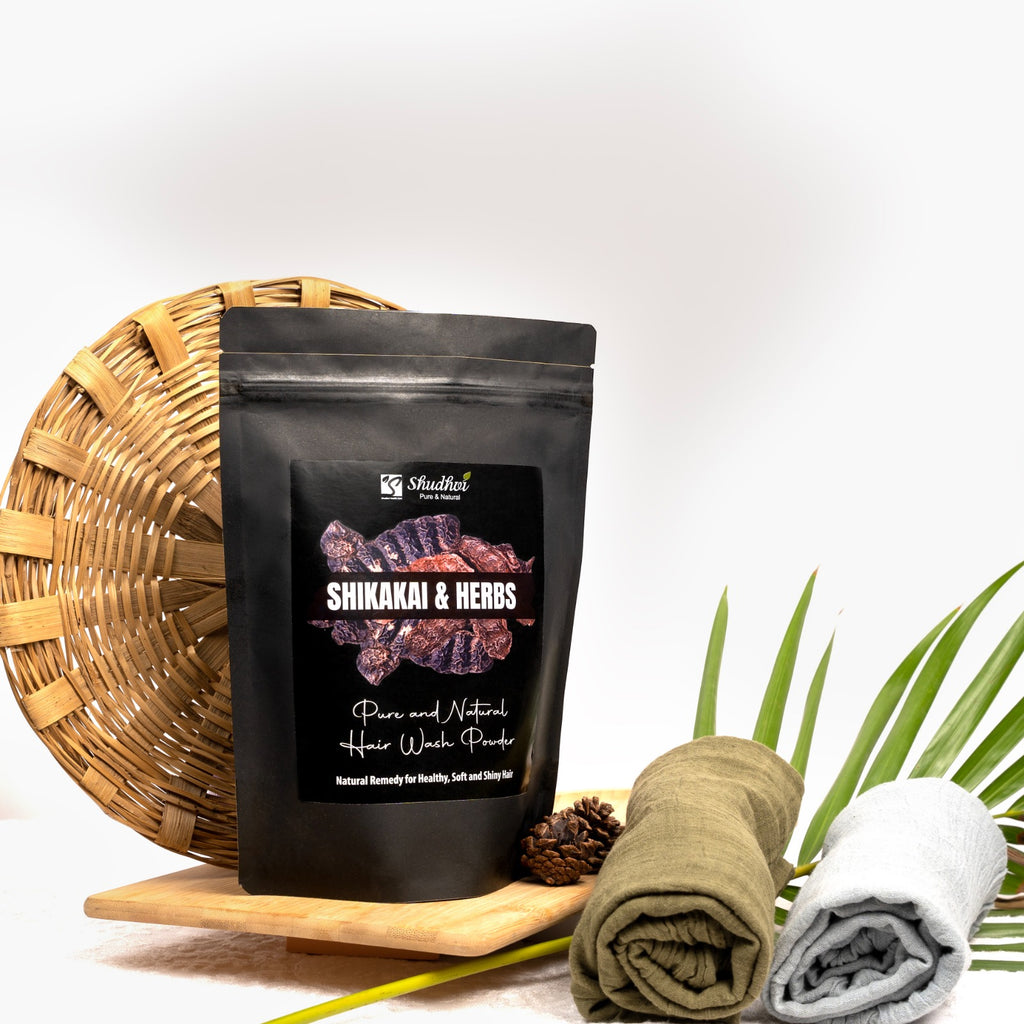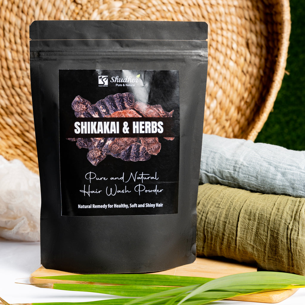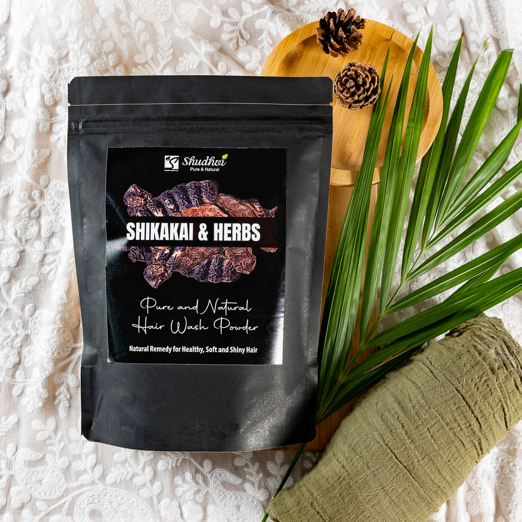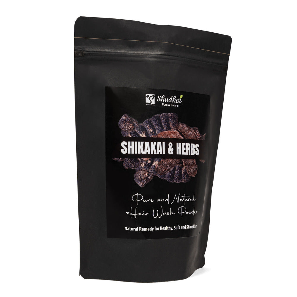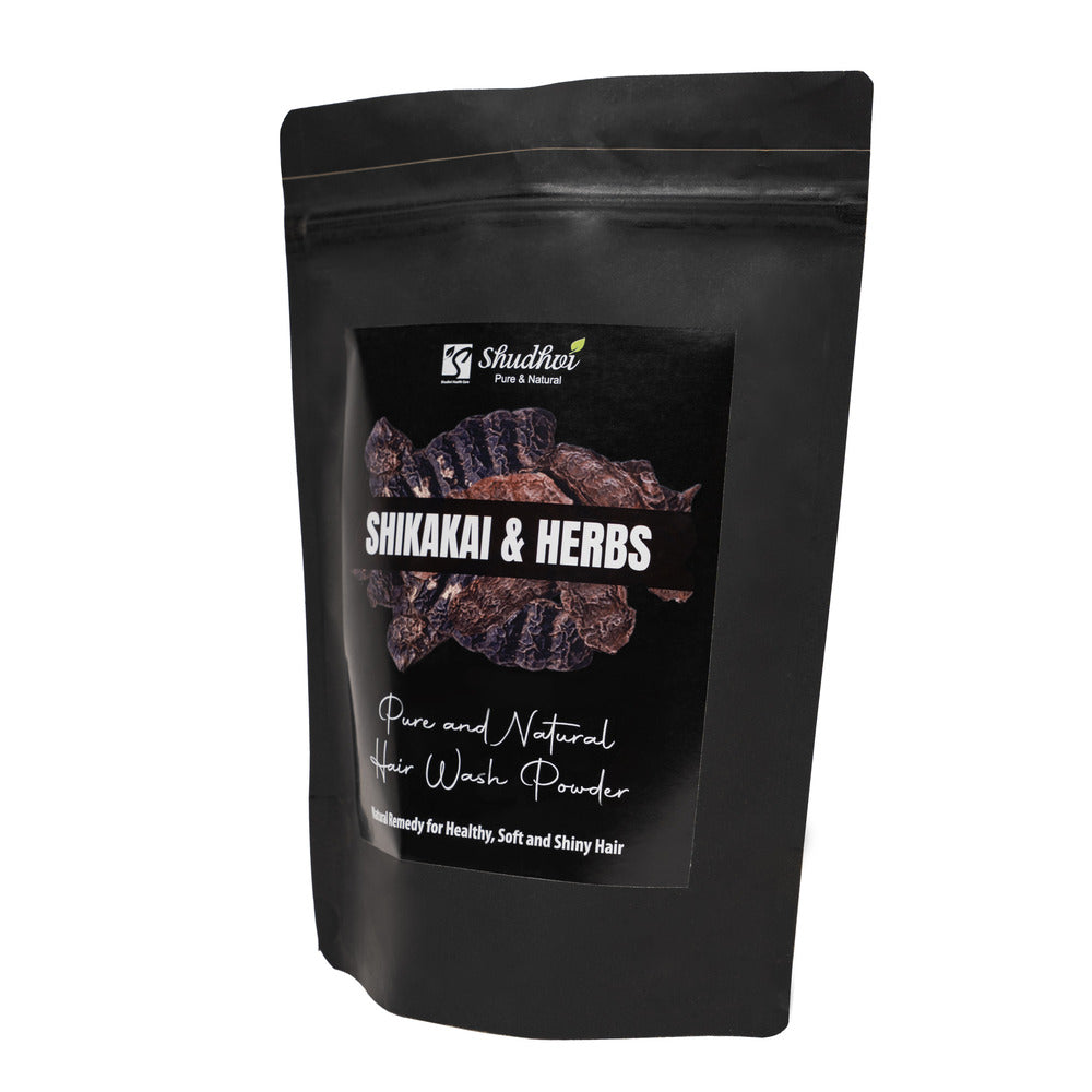 Shudhvi Hair wash powder is made of Fresh ground Shikakai along with other herbs that help in keeping your hair healthy and shiny. Regular use boosts hair growth, strengthens hair roots and maintains the moisture and health of scalp by preventing dryness.